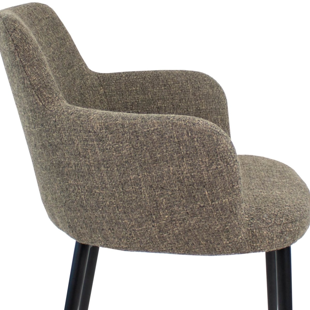 Son tissu texturé accueillant, sa base en métal noir robuste et ses accoudoirs inclinés apportent confort et stabilité au quotidien.