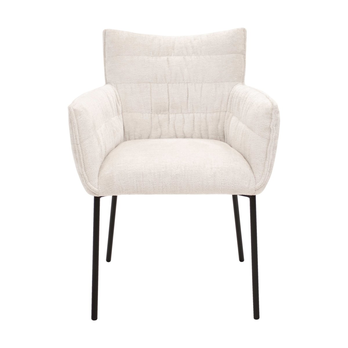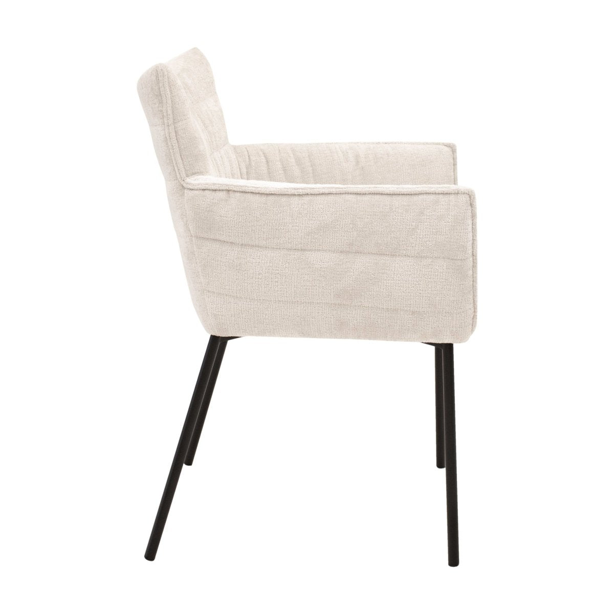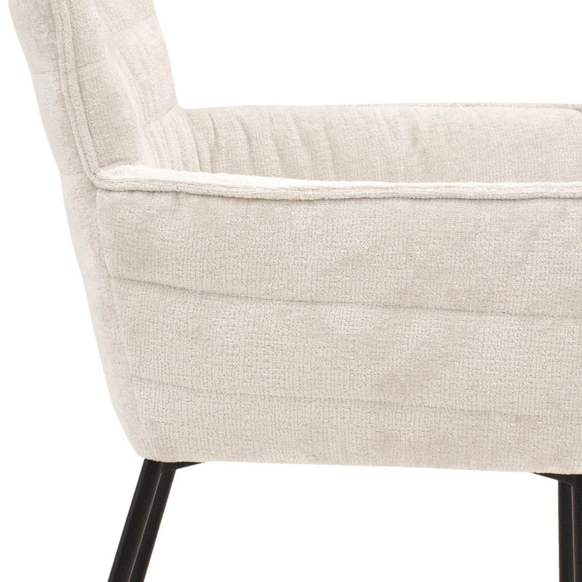 Chaise de salle à manger contemporaine en Chenille GOOS, conçue pour offrir une assise luxueuse et durable lors de chaque repas. Le tissu Chenille doux enveloppe confortablement l'assise, tandis que le cadre en métal noir assure stabilité et style moderne.