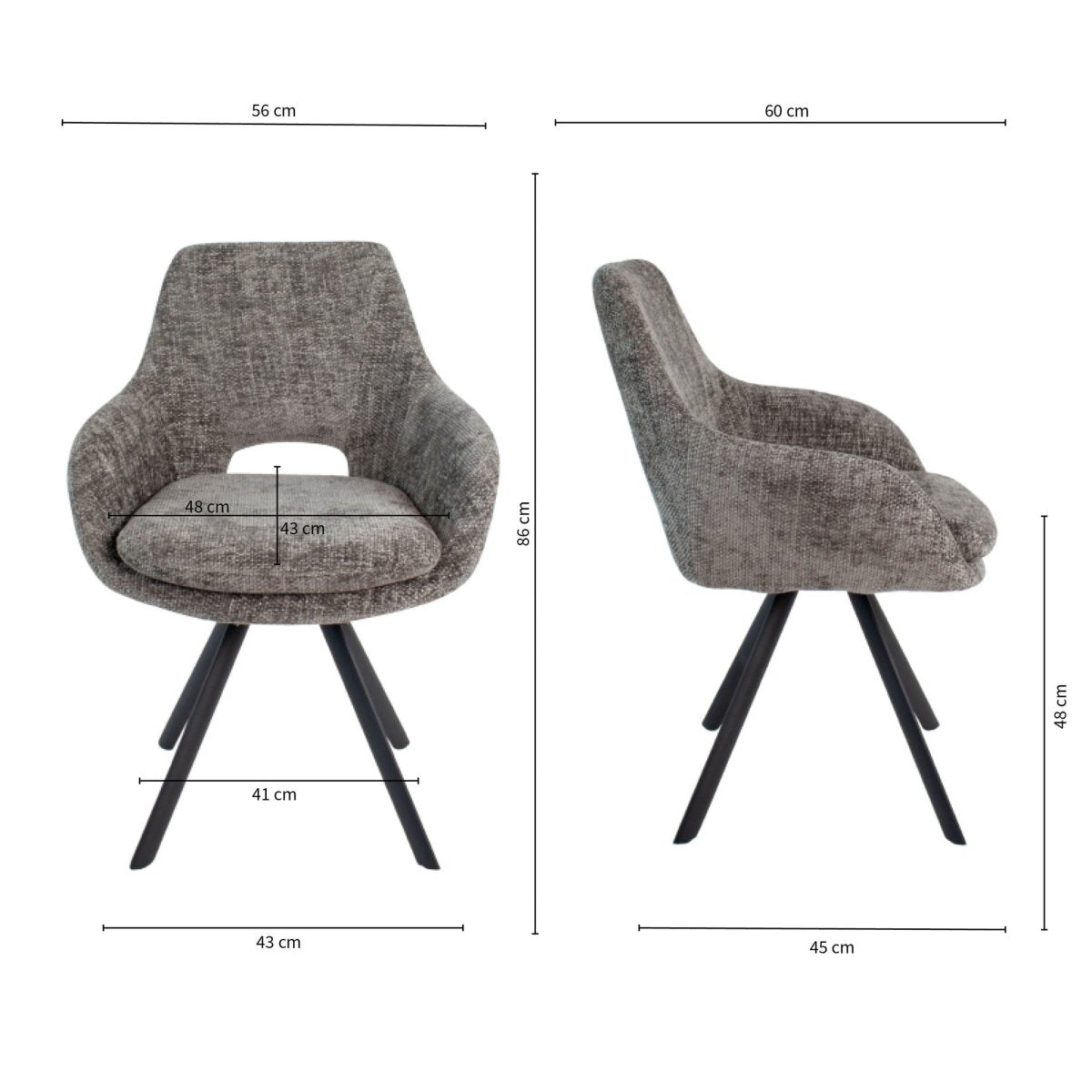 Découvrez la chaise de salle à manger Jorn, un choix raffiné en chenille grise qui s’adapte à tous les univers de déco. Revêtue d'un tissu chenille doux et résistant, Jorn offre une assise moelleuse et des accoudoirs élégants qui invitent à la détente après le dîner. Sa base en métal noir apporte une touche contemporaine et assure une stabilité fiable, tandis que l'ouverture subtile du dossier ajoute du caractère sans compromettre le confort. Disponible en plusieurs coloris époustouflants, elle se marie facilement à votre table et à vos goûts pour créer une ambiance chaleureuse et moderne.