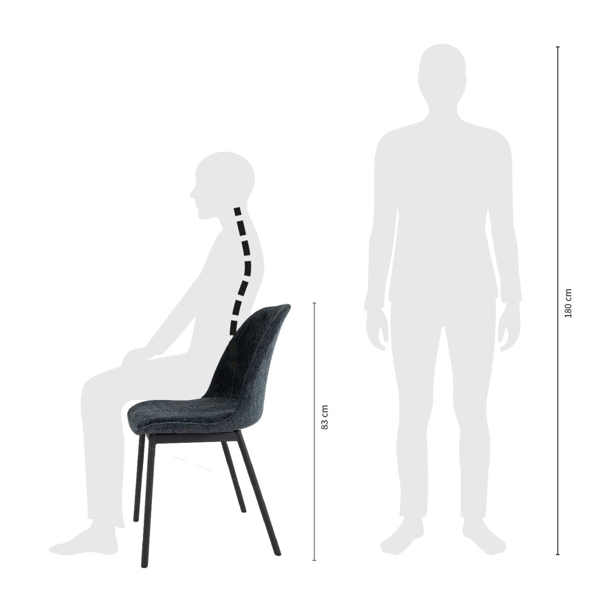 La chaise de salle à manger LANA est conçue pour offrir un confort immédiat lors de longues séances à table. Son siège moulé, revêtu de tissu texturé doux, épouse les formes du corps et soutient le dos, tandis que la structure en métal assure une stabilité silencieuse.