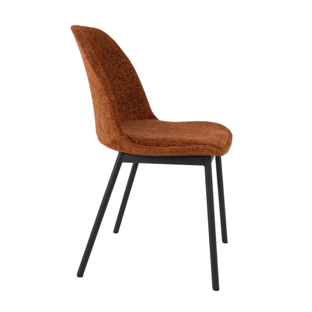 Chaise de salle à manger confort tissu orange — LANA, pensée pour des repas qui s’étirent sans fatigue. Cette chaise associe une assise galbée et un tissu texturé doux pour offrir confort et soutien lors de chaque repas. Son design polyvalent se fond dans tous les styles d’intérieur et, grâce à plusieurs coloris, vous pouvez mix and match selon vos envies.