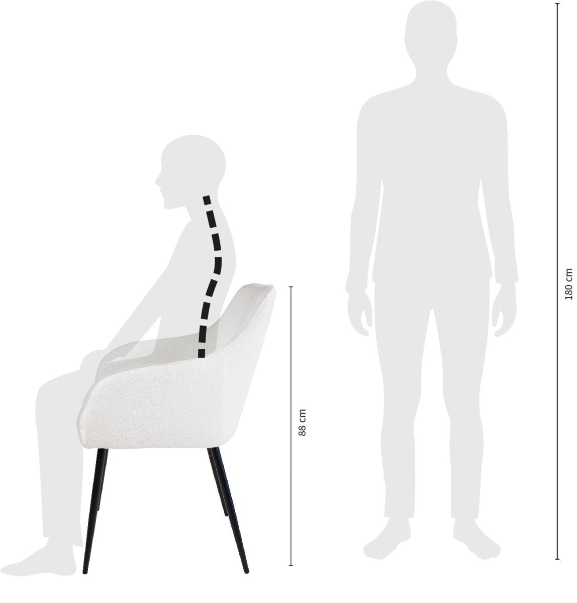 Son siège spacieux et ses lignes douces offrent un confort immédiat, tandis que le cadre en acier noir assure une stabilité durable. Le tissu bouclé fin ajoute une touche tactile et esthétique, renforçant l'impression premium de ce meuble.