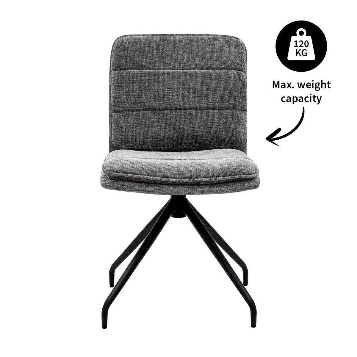 La Chaise Pivotante Gris Foncé, modèle Aron, est le parfait équilibre entre robustesse et style. Son mécanisme de base pivotante offre une rotation complète à 360 degrés, pratique pour circuler autour de la table sans vous lever. Le revêtement en tissu texturé gris profond apporte chaleur et élégance tout en résistant à l’usure du quotidien. L’assise et le dossier rembourrés garantissent un confort soutenu lors des repas prolongés, des sessions de travail à domicile ou des moments conviviaux avec vos invités.