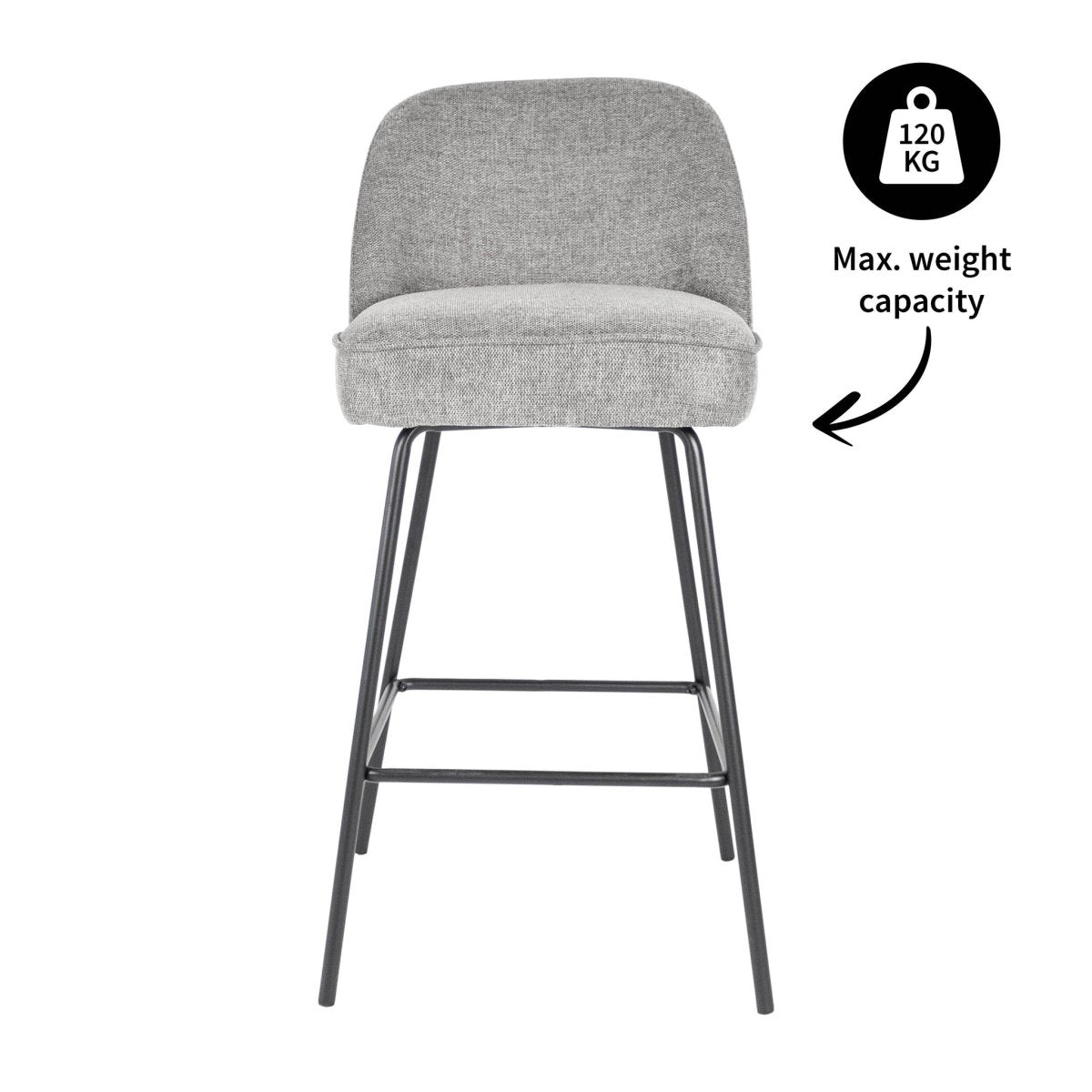 Son revêtement en tissu texturé ajoute une touche tactile et facile d'entretien, tandis que le dossier courbé offre un soutien lombaire sans compromis sur le style. Conçu pour vivre autour d'un comptoir, ce tabouret se marie parfaitement avec la chaise Britt assortie pour créer une atmosphère chic et cohérente dans la cuisine ou le salon.